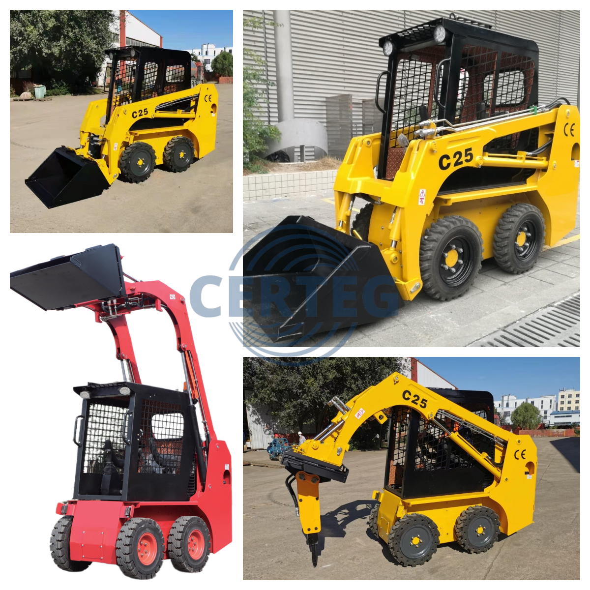 Meet the Certeg C25, the compact and agile wheeled skid steer loader that brings speed and efficiency to your job site. Perfectly designed for work on hard surfaces like concrete, asphalt, and pavement, the C25 is the ideal choice for construction, landscaping, and agricultural applications where maneuverability is key.