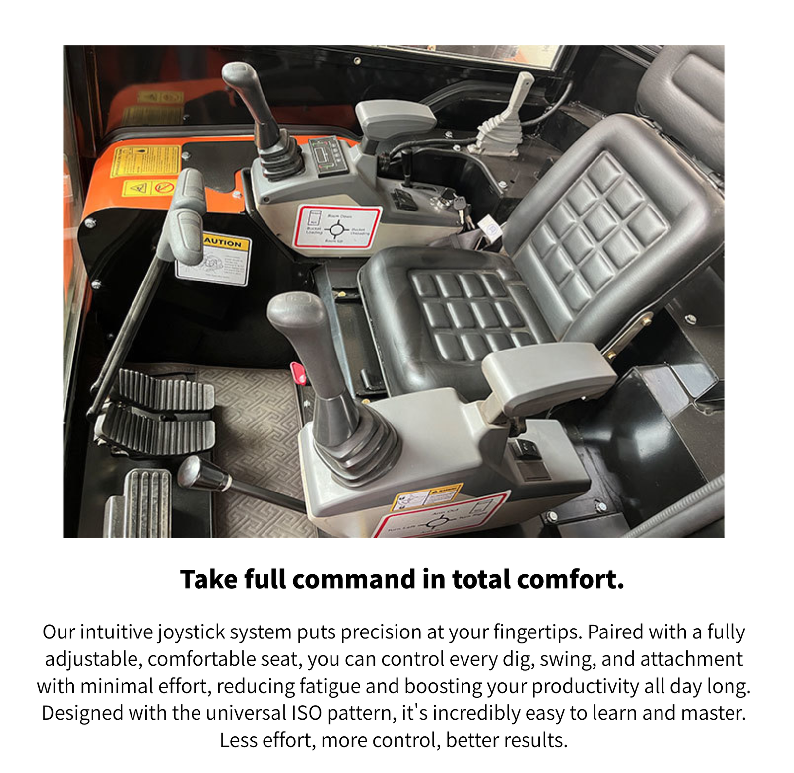 Our CT18 features a hydraulic joystick that redefines ease and accuracy. With smooth, responsive operation, it lets you control attachments—from buckets to augers—with minimal effort, cutting fatigue during long hours of grading, backfilling, or trenching.